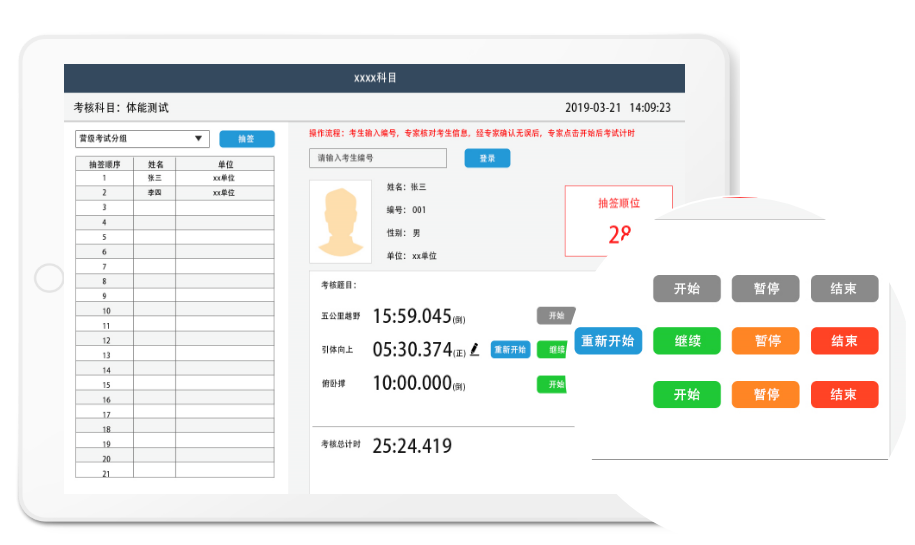 子系统: (1) 抽签系统: (2) 计时系统 (3) 专