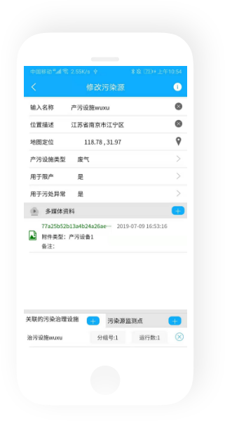 示该企业下的污染源,点击[加号] 图标跳转至新