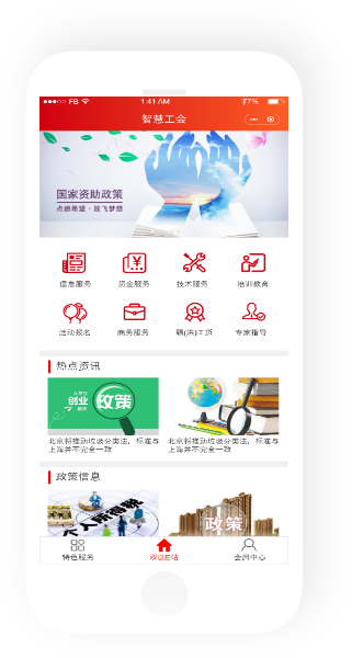 活动报名、商务服务、赣(洪) 工贷、特色服务这