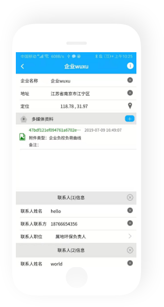 右侧[加号] 图标以添加文件,联系人信息至少添