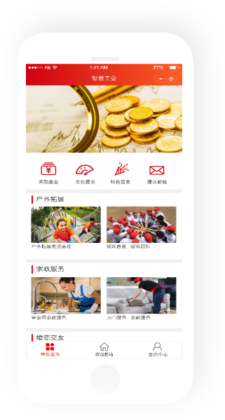 活动报名、商务服务、赣(洪) 工贷、特色服务这